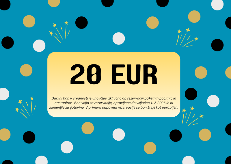 Ob rezervaciji pri nas vam podarimo darilni bon v vrednosti 20 €, ki ga lahko izkoristite pri vaši naslednji rezervaciji oddiha*